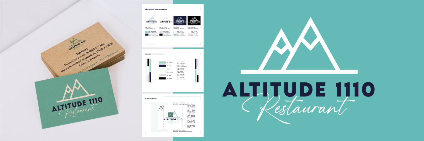 ALTITUDE 1110 – RESTAURANT – BELLEVAUX Recherche et proposition de logos | Création de la nouvelle charte graphique, de la papeterie institutionnelle et des modèles de menus.
