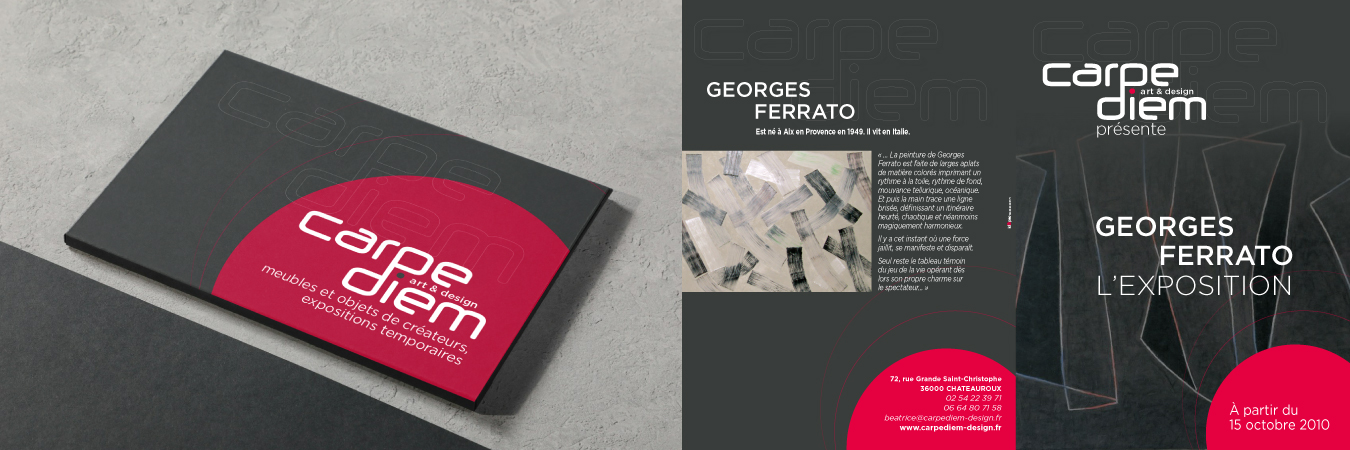 CARPE DIEM – MAGASIN DE CRÉATEURS – CHÂTEAUROUX Conception de l’identité visuelle | Papeterie institutionnelle | Déclinaison pour les différents supports : vitrine, cartons d’invitations, catalogues.